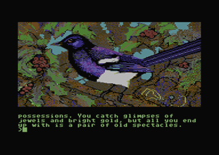 In this section you will find selected screenshots from "Jinxter". Why only selected screenshots and not all of them? The Magnetic Scrolls games were, apart from their brilliant plots, all about what cool picture was going to come next. Showing all of them on this website would greatly spoil the fun, should you ever get the chance to play these games. |
